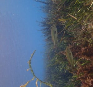 We swam over tall grass beds swaying in the water, as sandy patches bubbled below our feet. Parts of the riverbed were littered with small shells, potentially hiding fossils and sharks teeth among them.