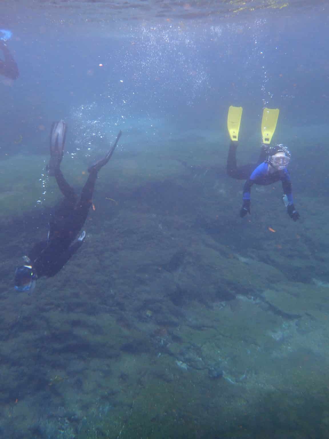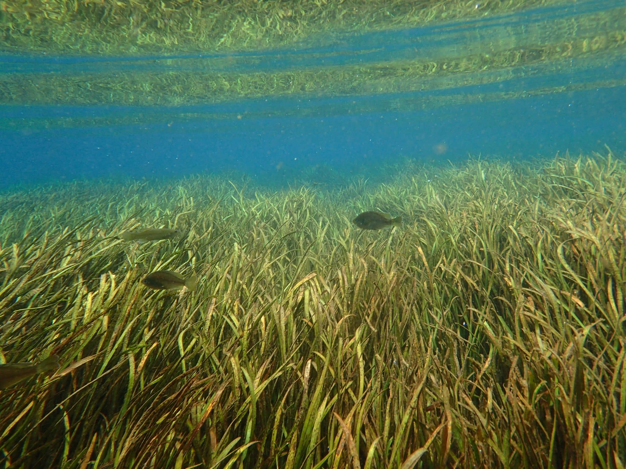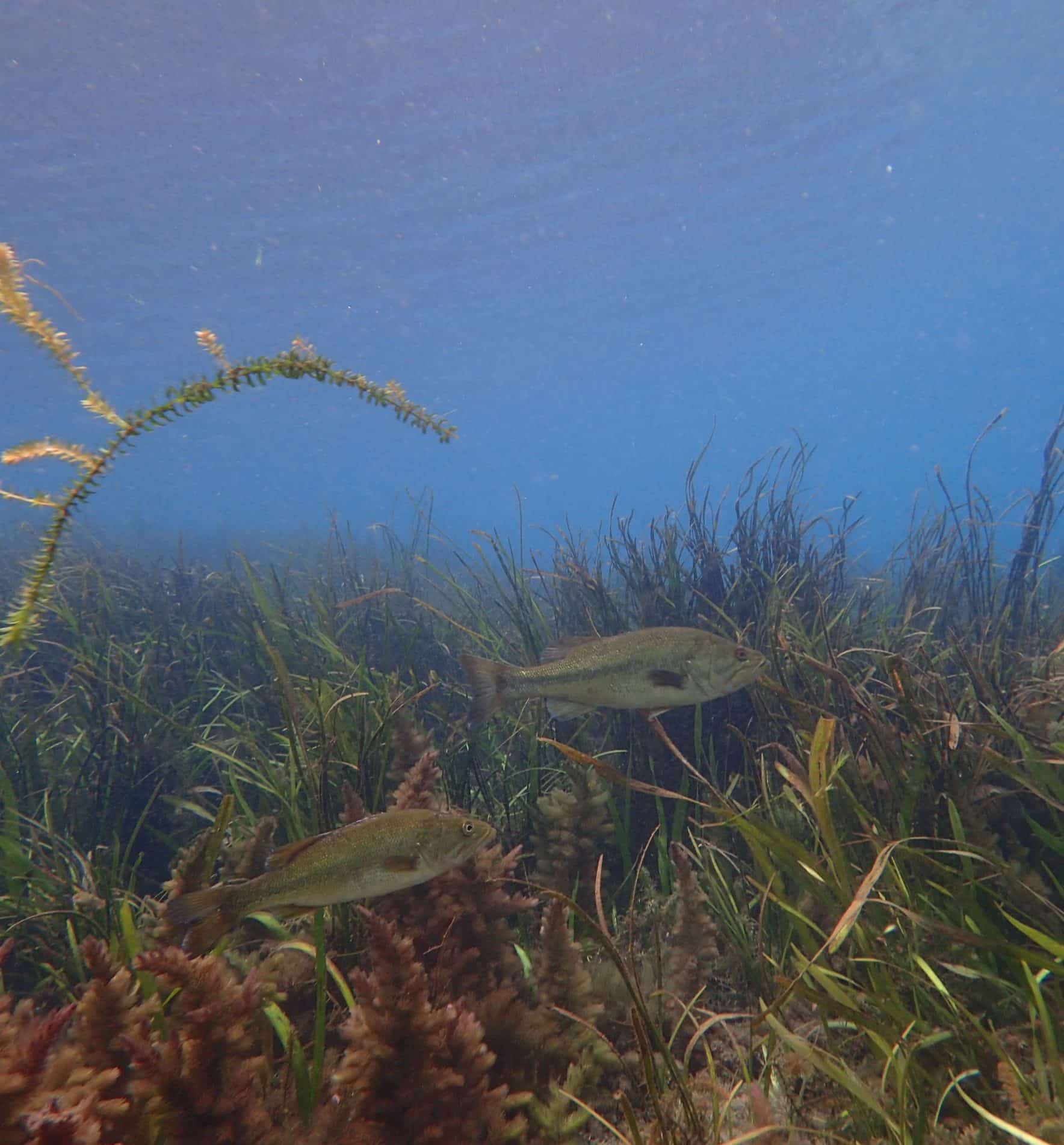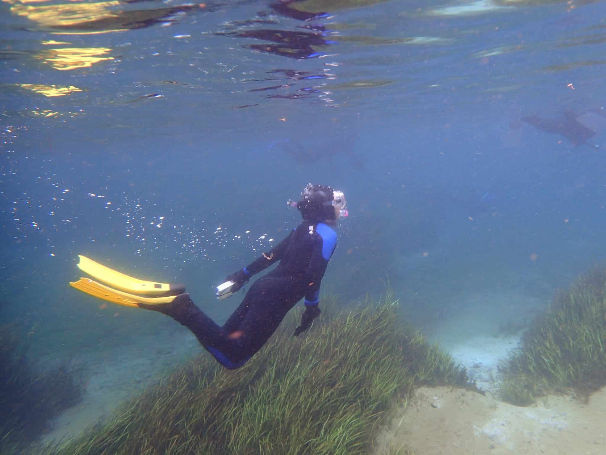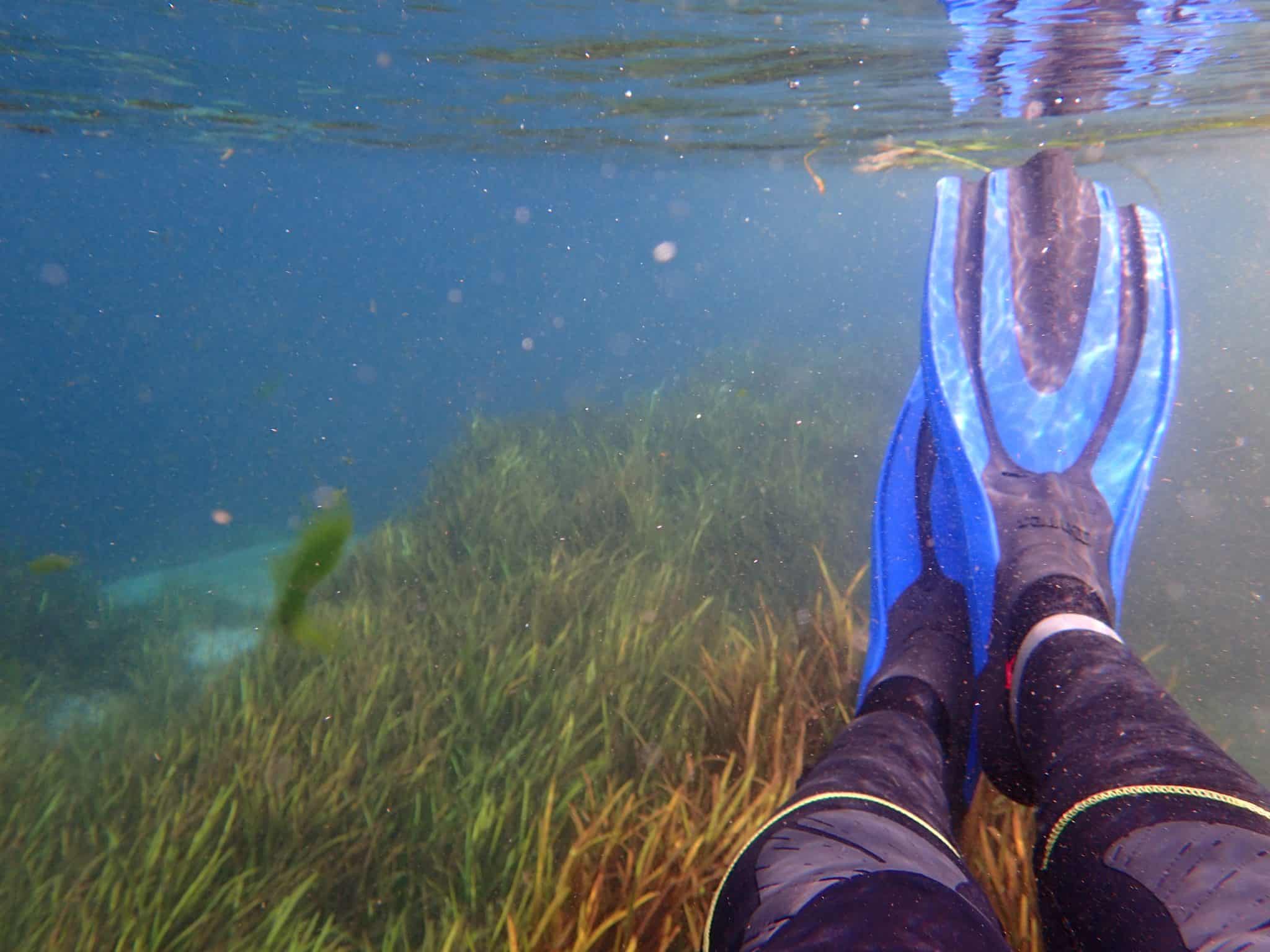 We swam over tall grass beds swaying in the water, as sandy patches bubbled below our feet. Parts of the riverbed were littered with small shells, potentially hiding fossils and sharks teeth among them.