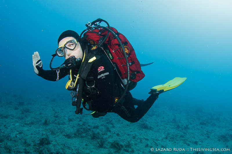 Today Sirena headed out to do a couple of reef dives at 10:00am with divers from all over the country. Under clear skies, we slowly motored our way out the clear-blue inlet water and headed south. Seas were 2-3ft. with the occasional 4ft rolling through. With Sirena’s Christmas tree ladders, getting on the boat wasn’t going to be an issue with these seas. The water was an inviting dark, cobalt blue color. A sign that we could expect good visibility underwater.