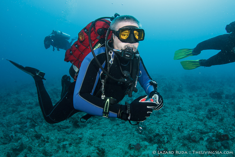 Capt. Walker stopped the boat near Anchoring Spot, a part of Double Ledges reef. The group descended to the reef and slowly traveled north in a very minuscule north current. Visibility was in the 50-60ft. range.