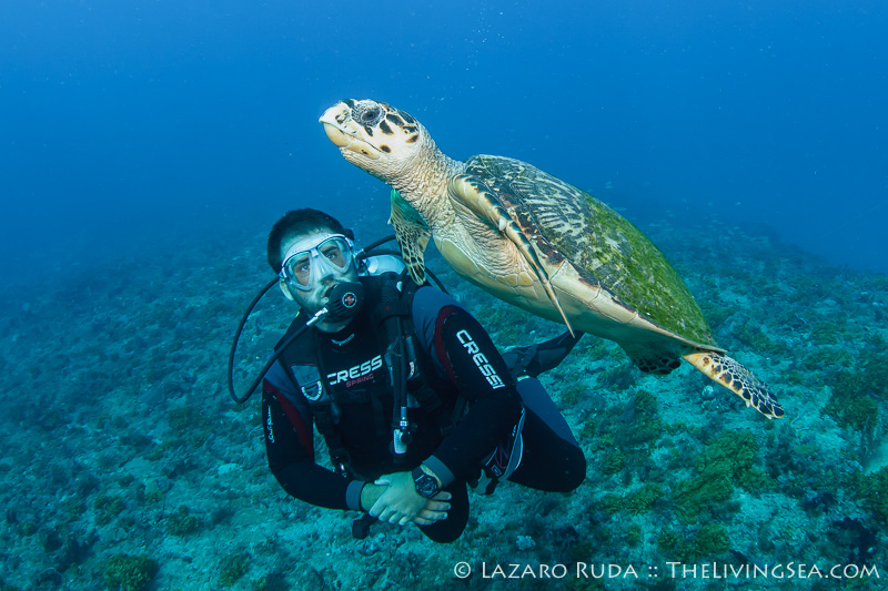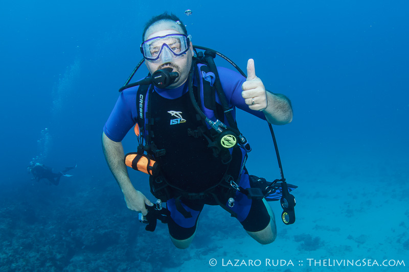 No! I’m not referring to a state of mind… I mean blue water! After way too many days of thunderstorms and relentless wind, mother nature rewarded us in the best way possible: very blue water! Stir this up with an amazing number of marine life encounters and you have the recipe for a great day of diving.