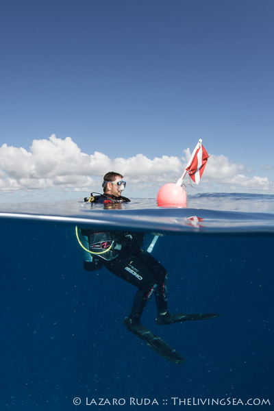 Conditions were too perfect to not attempt some of my favorite type of photographs: over / under photographs. With captain Mark and Ian’s patience, I was able to capture a photograph of Sirena floating behind Ian while he patiently waited underwater.