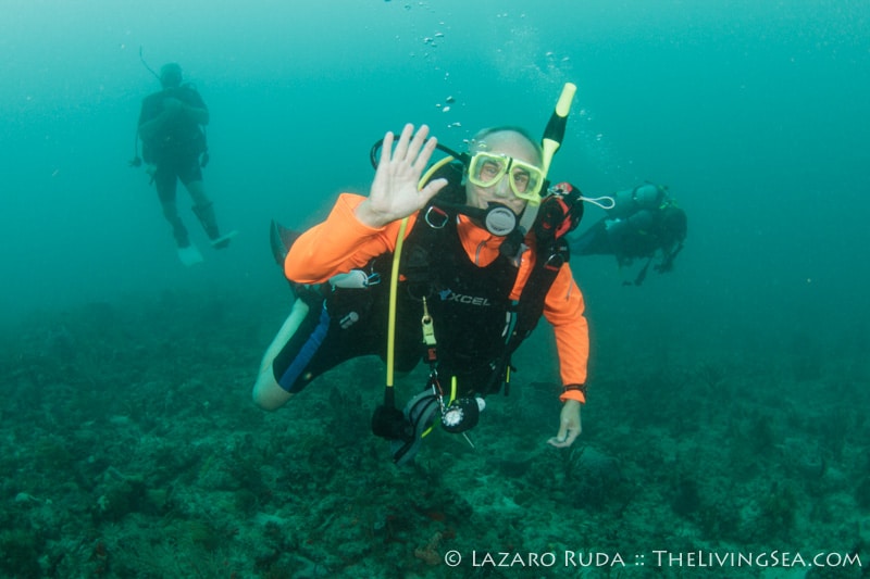 Our dive boat headed out to scuba dive a couple of gorgeous reefs todays in West Palm Beach, Florida. Our first dive site was Ron’s reef followed by Dive-A-Rama. Scuba diving during the summer months in Florida is especially nice since water temperatures increase into the 80s and the seas are typically flat.