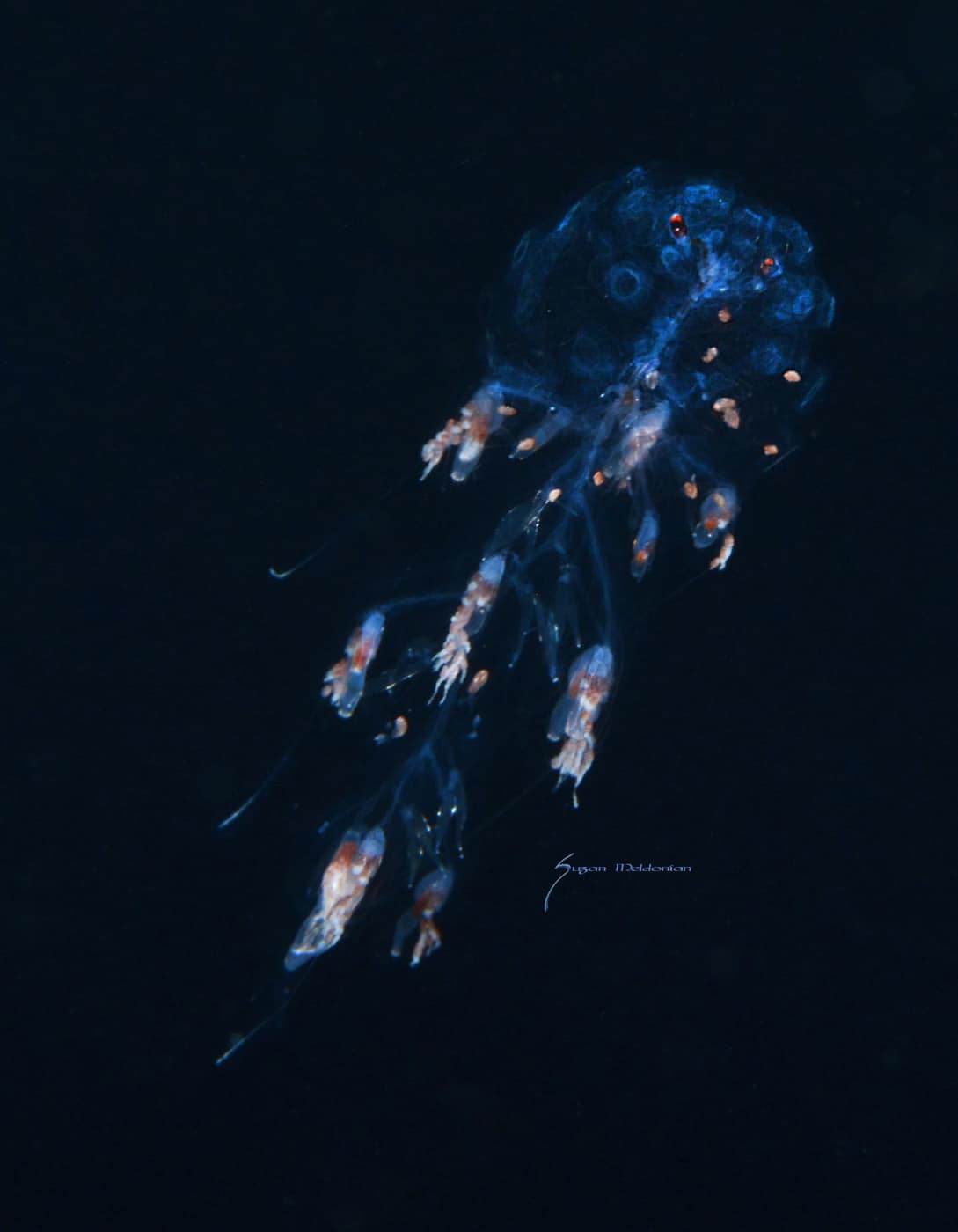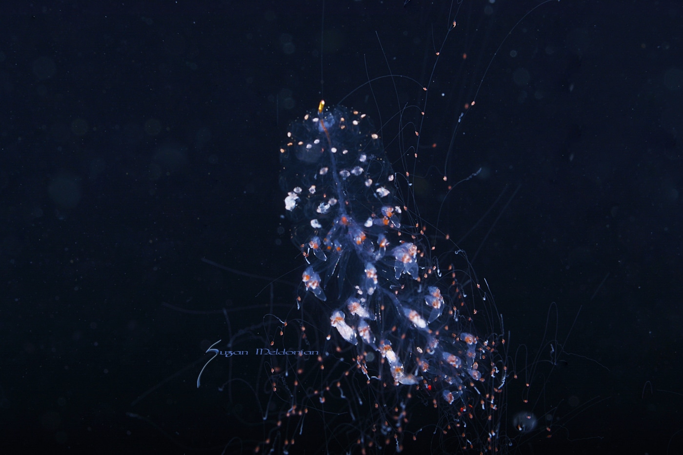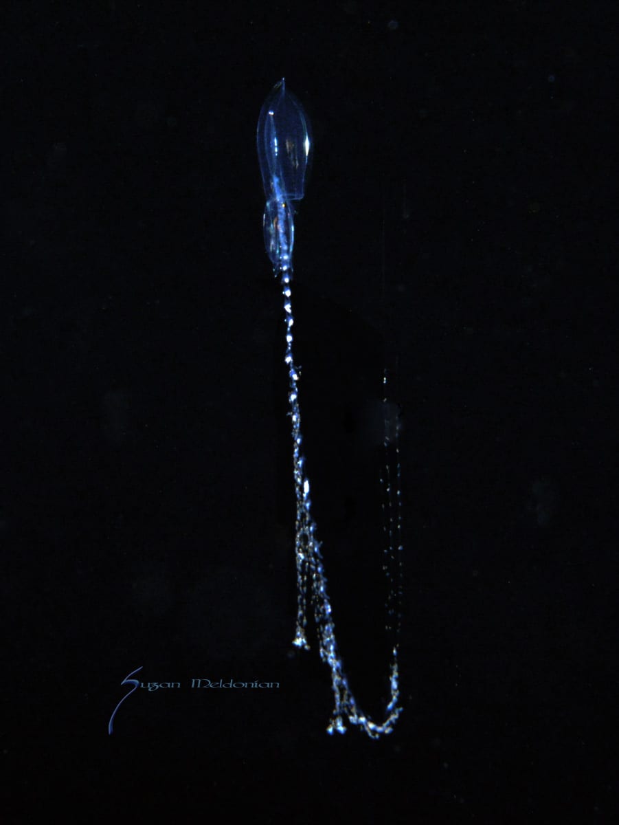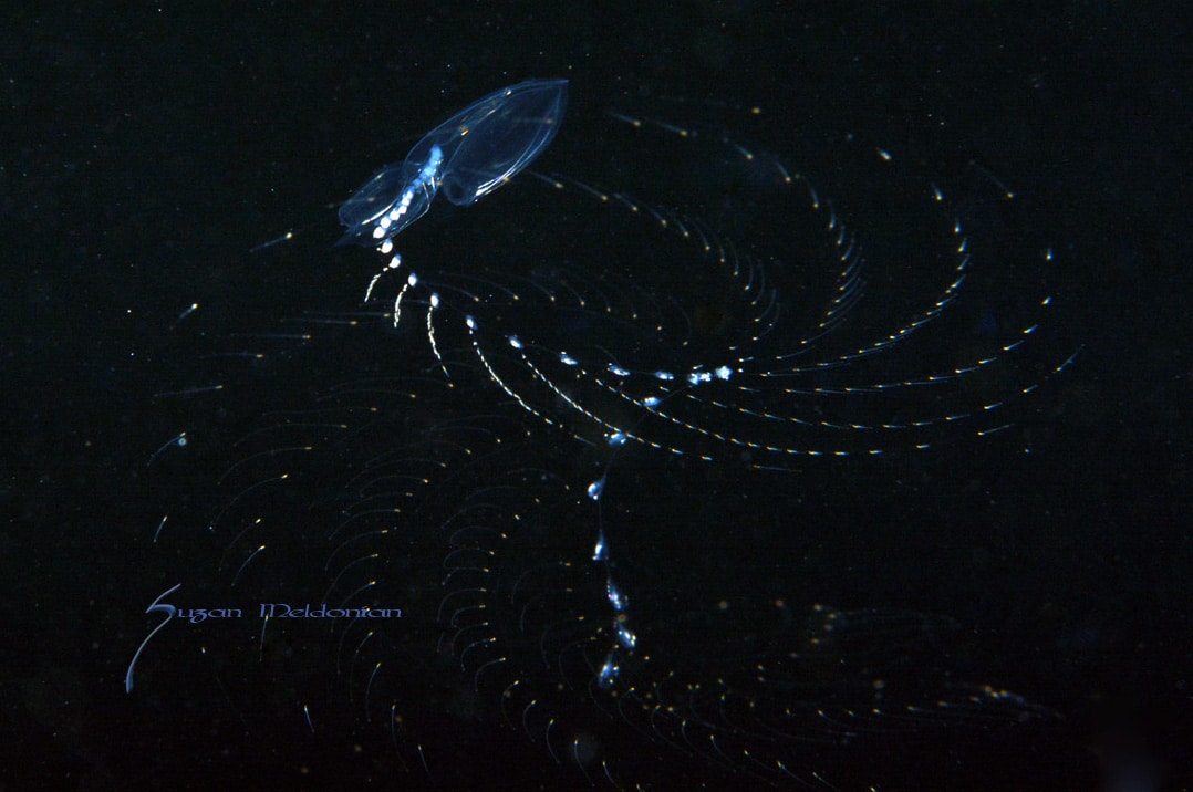 Spiro Gyro- Siphonophore throwing out it’s fishing net of sticky tentacles. By Suzan Meldonian