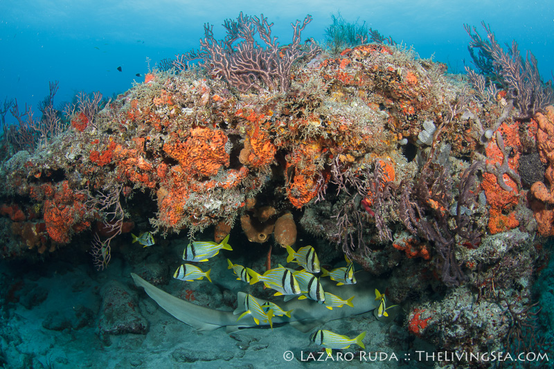 Approaching the last two fingers of Breaker’s reef, the marine life exploded in full splendor. The water column was teaming with atlantic spadefish! In hopes of capturing their beauty, I switched my camera to video and began capturing footage. As I panned away from the school of spade fish, on the edge of my camera screen, a female loggerhead swam into view. I slowly swam to it still rolling film. A school of jack approached the turtle and away the turtle rocketed. Whoever says turtles are slow has never seen a loggerhead swimming at mach 5 speeds.