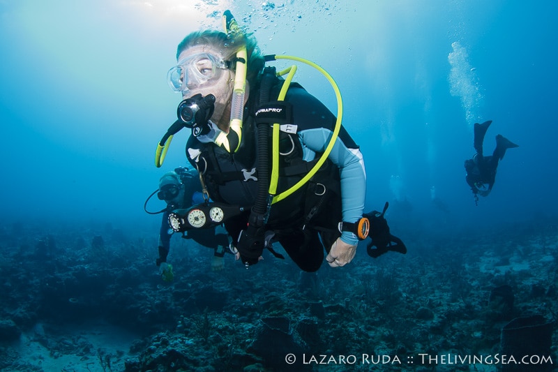 We descended on Breaker’s reef near four windows under crystal-clear water. The current was moving ever so slightly in a north direction. Engulfed in the rainbow-colored sponges, swaying soft corals, and masses of tropical fish, the group enjoyed a leisurely drift along the reef’s ledge.