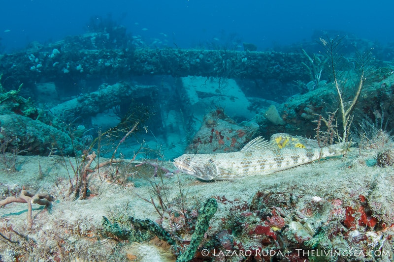 We encounter a large southern stingray gliding above the sand on our drift to the Playpen. The barking sounds of the goliath groupers who live here year round could be heard. Minutes later we encounter these leviathans hiding in the large concrete culverts.