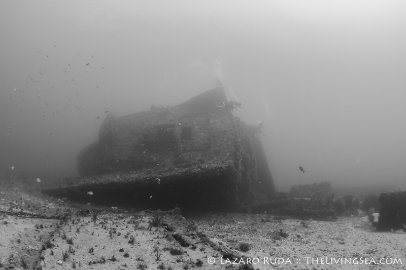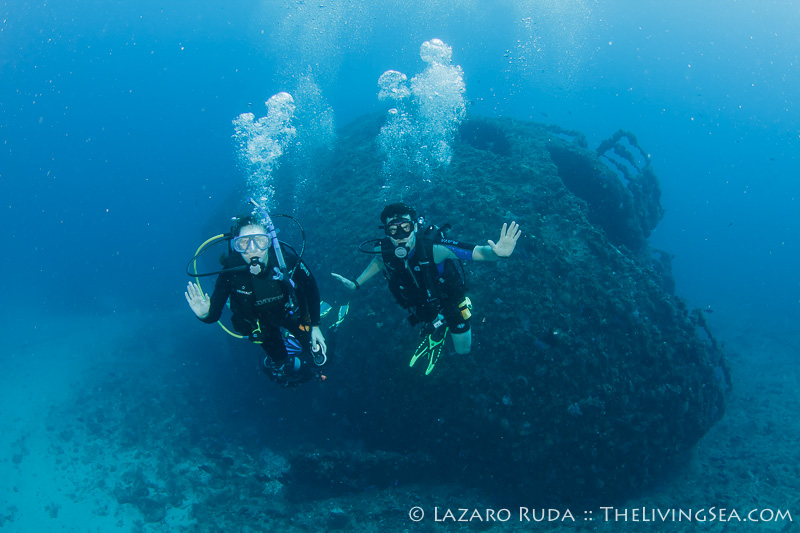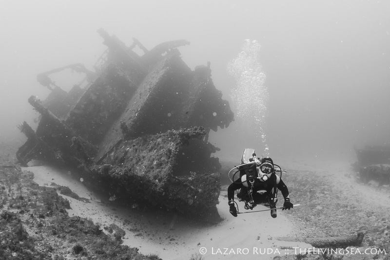 Upon descent, the group got a chance to see a very large lemon shark circling the wreck. The current was negligible at best. Swimming circles around the wrecks was possible, giving the group of divers the opportunity to explore the wrecks in detail.