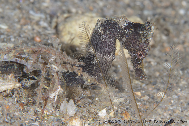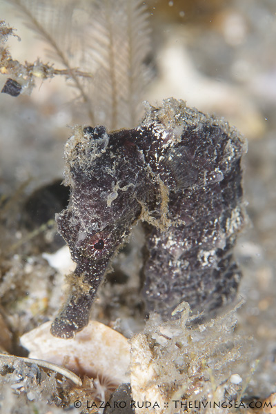 Just minutes after entering the water, a tiny shadow in the distance swayed back and forth. I could tell from a distance that this was a tiny seahorse. Its face was towards the current snatching any little tidbits of food that would drift passed him. Like all animals in the natural world, these juveniles with the oversized extensions of their body have a certain cuteness factor that is hard to overlook. Even though I have seen hundreds of these little seahorses in my lifetime of diving at the Blue Heron bridge I am still awe struck by them. I hovered nearby just gazing at this little miracle.