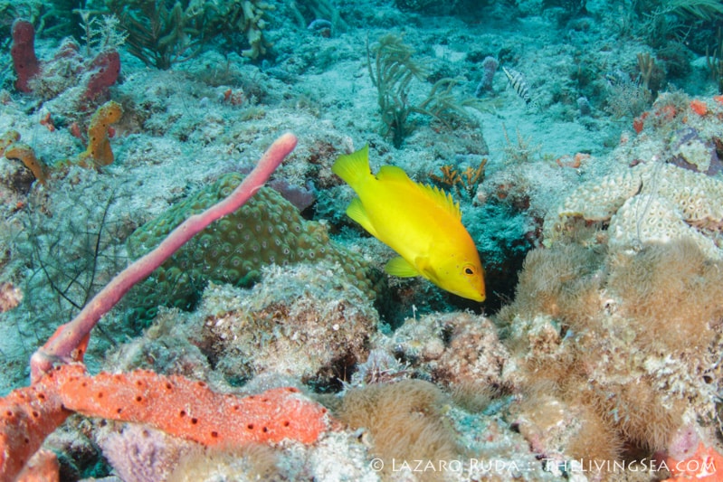 The M/V Sirena headed to the southern reefs across calm 1-2 foot seas. The water, a crystal-blue color, was so inviting. Once in the water we could see the bottom from the surface. Horizontal visibility was a good 50+ feet. To add to the nice conditions was a soothing 79 degree water temperature.