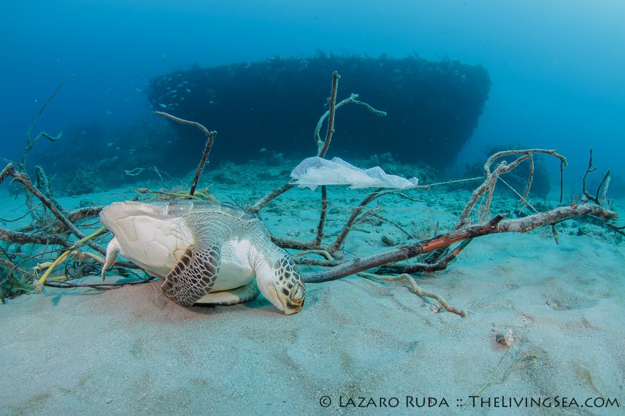 Sea turtles will feed on jellyfish or on bits and pieces off the reef. To most turtles, the allure of a floating piece of plastic is hard to resist. Once they have taken a bite or two and realize what it is, regurgitating this harmful item is nearly impossible for the turtle. The bag will at times get stuck in their digestive tract and cause the sea turtle to slowly starve to death. Balloons have a similar effect on sea turtles and other sea creatures. The importance of properly recycling these items, or better yet, live a life without the use of these items, is an important step towards a better and healthier Earth.