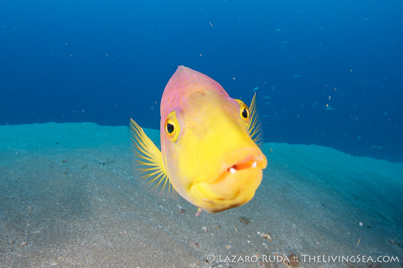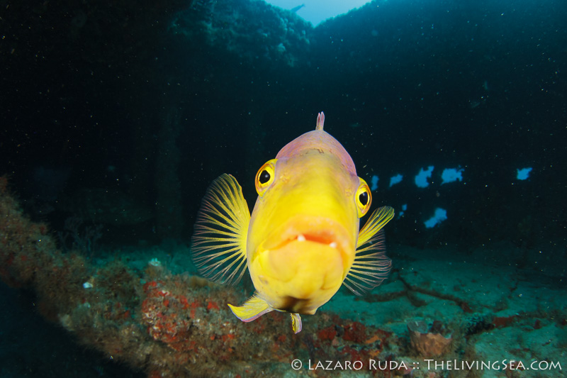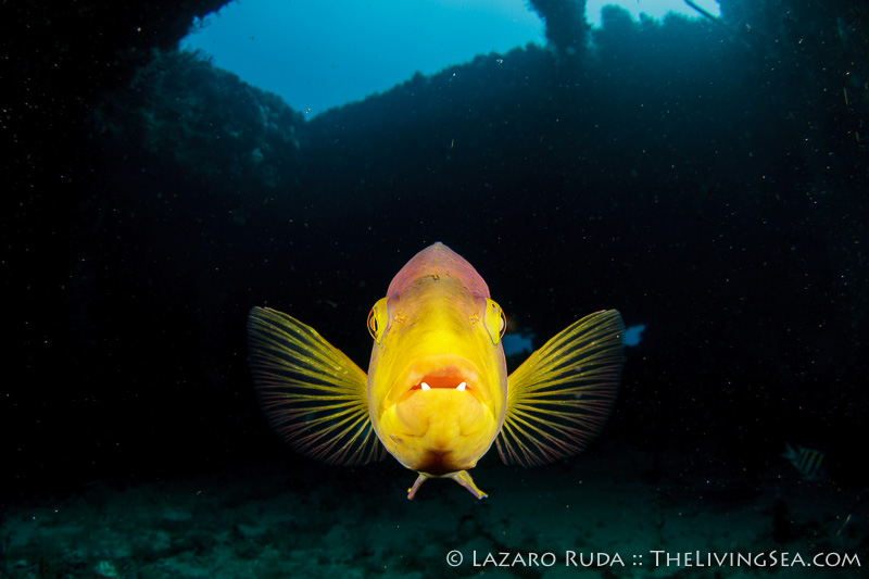 As I was poking my head inside the Mizpah wreck looking for the goliath groupers, out of nowhere this Spanish hogfish comes charging straight at my camera’s glass dome. In a glimpse he tested whether I had the proper exposure and my strobes were properly placed for an unexpected encounter. Needless to say, I was a bit sloppy and my initial encounter was a complete failure. I was far from ready!