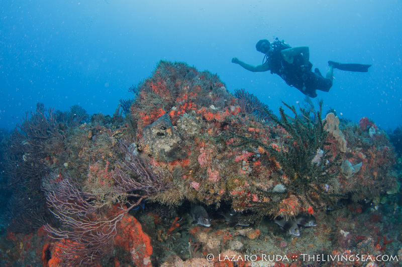 If you haven’t guessed by the photographs, conditions were pretty awesome today. We had blue, warm water (60-70ft+ vis) and no current on the Corridor wrecks. On our second dive the current switched to the ON position and we were cooking at around 1 knot at Double Ledges. Thankfully, the ledges provide enough relief that tucking out of the current was easy to do.