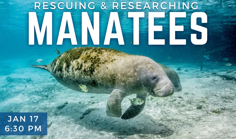 Join us to learn how you can help save Florida manatees! Enjoy delicious hors d’ouvres, beer, and wine as you learn from Amber Howell, a biologist with the Florida Fish and Wildlife Conservation Commission (FWC), during this in-person event.