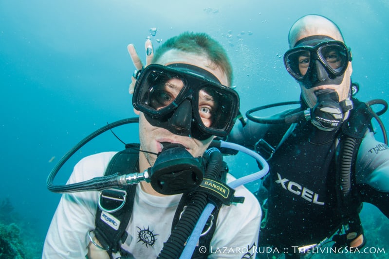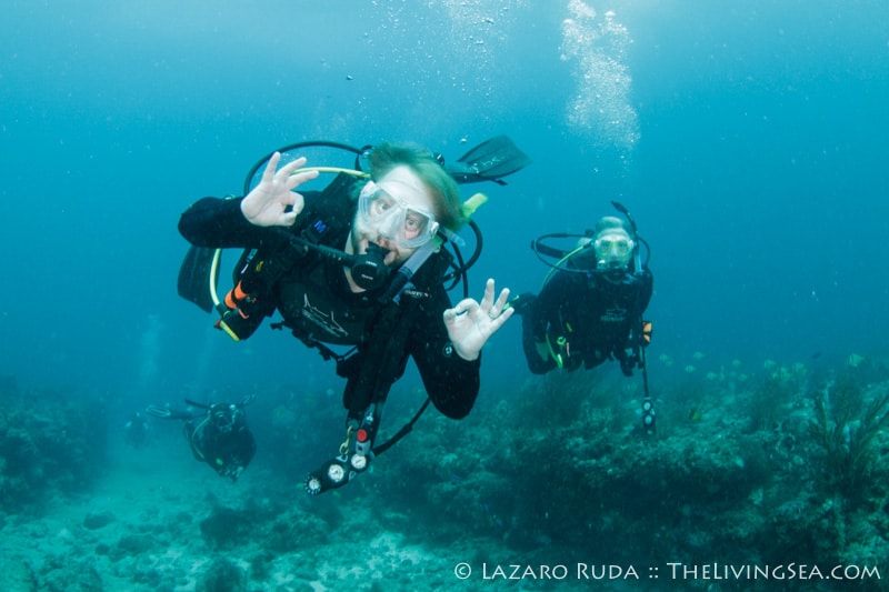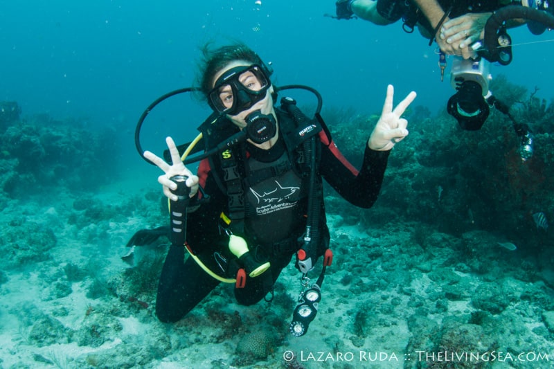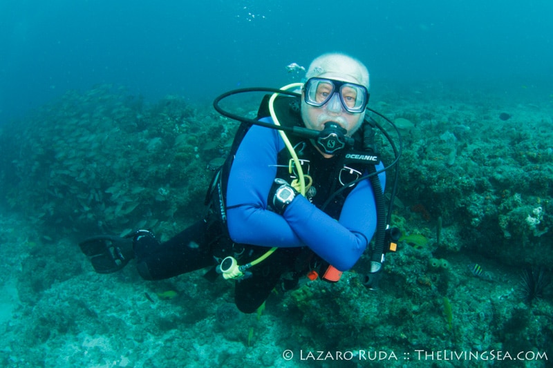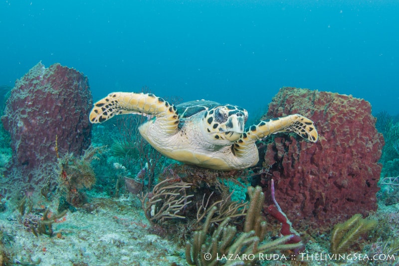 Our second dive was on Breakers reef. The first thing we fixed our sight on was a turtle butt up in the air. Even before I could easily identify the turtle, I had a pretty good idea it was a hawksbill sea turtle. These teenagers are known to stop at nothing to get at those delicious morsels of sponges. I don’t recommend you try them yourself as they are extremely toxic and go down like fiber glass! We watched this turtle go about its business without a single care for the numerous divers enjoying its presence. The rest of the dive included tons of tropicals, squids, and much more… all cloaked in some great visibility.