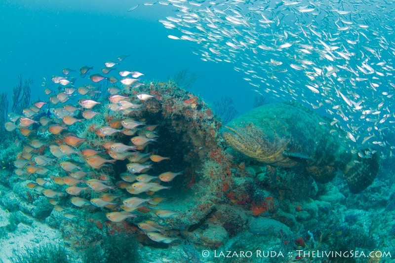 Conditions underwater have finallyy improved greatly! We couldn’t ask for better timing as it is time for the goliath grouper spawning aggregation. Today’s dive on the southern reefs included encounters with numerous groupers, sea turtles, sharks, and much more.