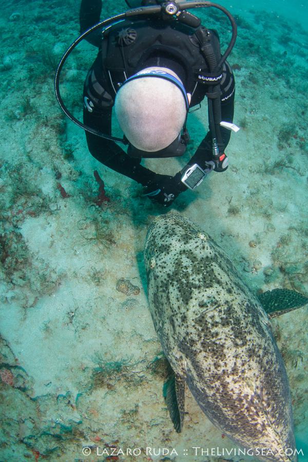 For our second dive we headed offshore a bit to Larsen’s Valley. Upon our descent we encountered our friend, Buddy, the Goliath grouper. How do I know it was Buddy? Few Goliath groupers come swimming right up to you, get within inches of your mask, and stare you straight in the eyes. Then he goes and does the same thing to every other diver.