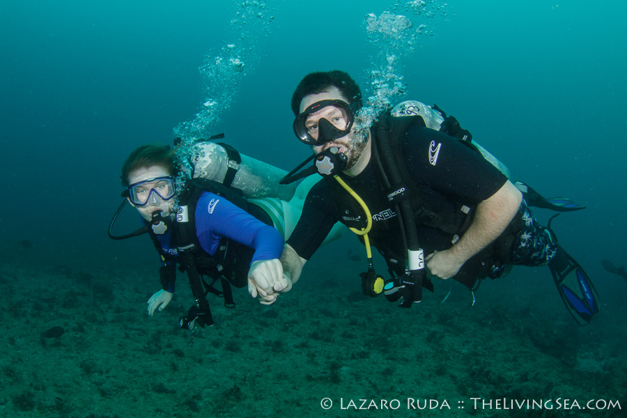 Speaking of pets and barking… At one point in the dive, Lindsay, who was teaching Allegra, was closely observing a creature near the reef, floating in her usually upside-down form, when a Sea Chihuahua began to bite at her fins. The Sea Chihuahua looked a lot like me, but there was a purpose to these follies. Allegra watched this take place which caused her to laugh uncontrollably, thus flooding her mask… Flood mask and clearing skill for Allegra = COMPLETE! All thanks to one trusty Sea Chihuahua.