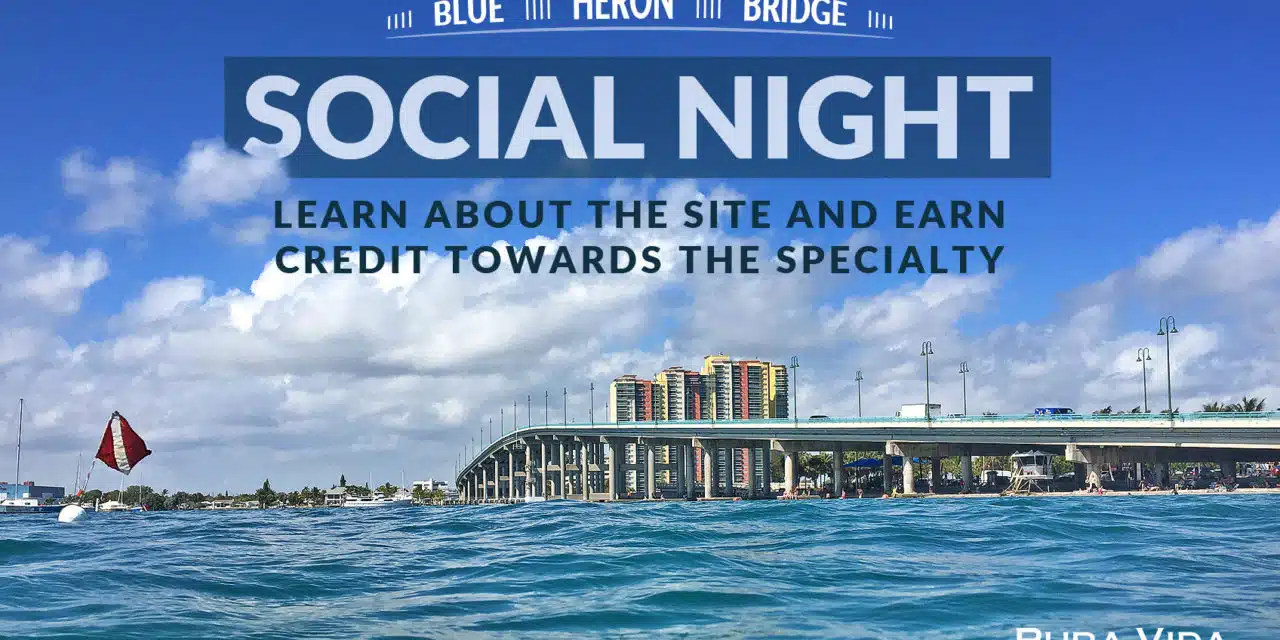 Join us on Friday, March 22 for our next Social Night, all about the Blue Heron Bridge! The March Social Night will serve as the classroom portion of Pura Vida’s exclusive PADI Blue Heron Bridge Distinctive Specialty. We will share secrets from this world-renowned shore dive. Learn about site navigation, tips for spotting elusive wildlife, dive etiquette and more. Enjoy delicious free food, beer and wine, or even bring a dish to share! Then, complete your specialty certification with a Saturday morning dive.