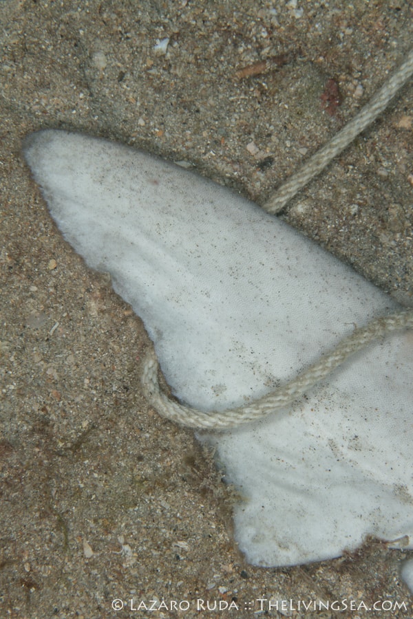Fifteen minutes later things went from worse to worst… As I was traveling from one wreck to the next I came across a very sad sight. A sandbar shark lay lifeless on the ocean floor with a line wrapped around its tail. No doubt the work of some careless and cruel person. I am a strong believer that there needs to be a balance of predator and prey in nature, and I see nothing wrong with killing (sustainably) what you’re going to eat. But this senseless, careless, and wasteful act causes both upset and disillusion. I hope we will come to reason before it is too late.