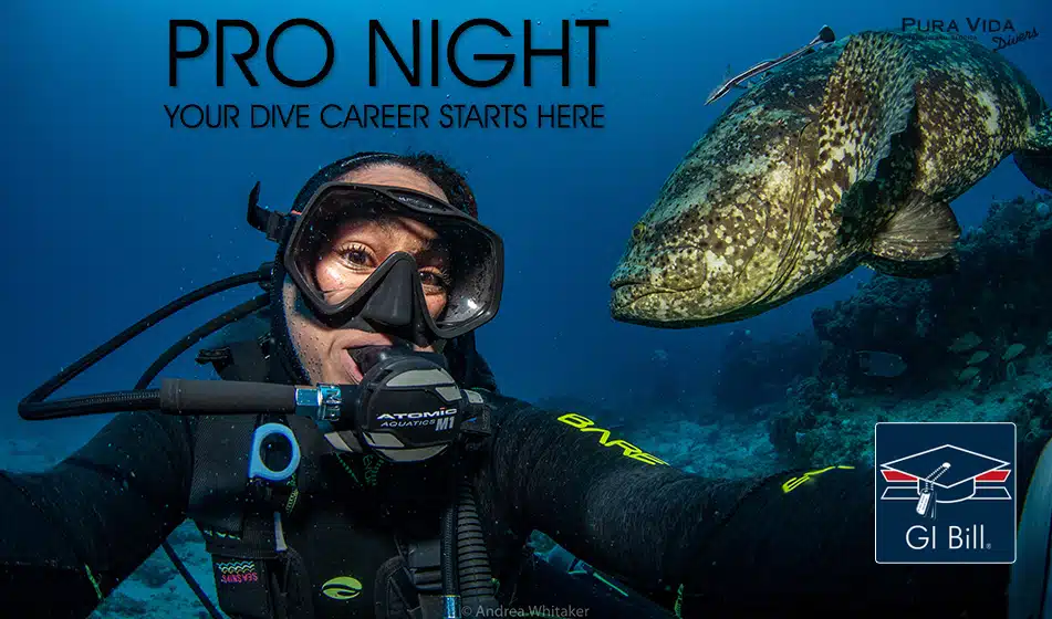 Learn about a variety of professional diver programs offered at Pura Vida Divers during the PADI Pro Night! Whether you are a non-diver looking to start your journey, or a seasoned diver hoping to expand your skills, we can help you find the best program for you. Veterans, find out how you can use your GI Bill benefits to pay for professional dive training.