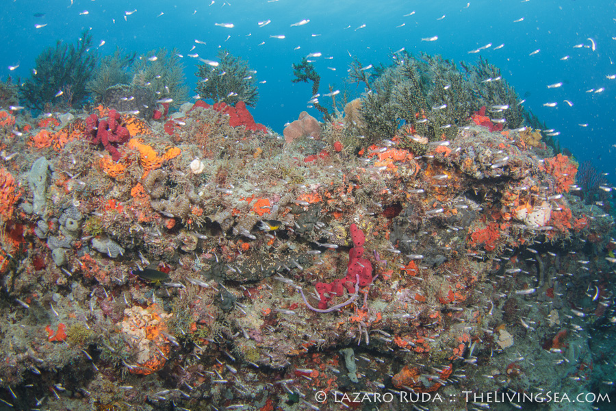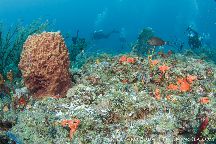 We began our dives on Tear Drop. We cruised along the ledge to Ron’s Rock. Eels and tropical fish of all kind surrounded us. A hawksbill sea turte swam right past the whole group. Upon reaching Ron’s Rock, it appeared as though one particular sponge had spawned earlier. Perhaps a sign that we would soon be seeing a sponge spawning event any day now.
