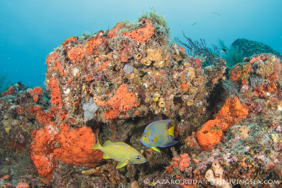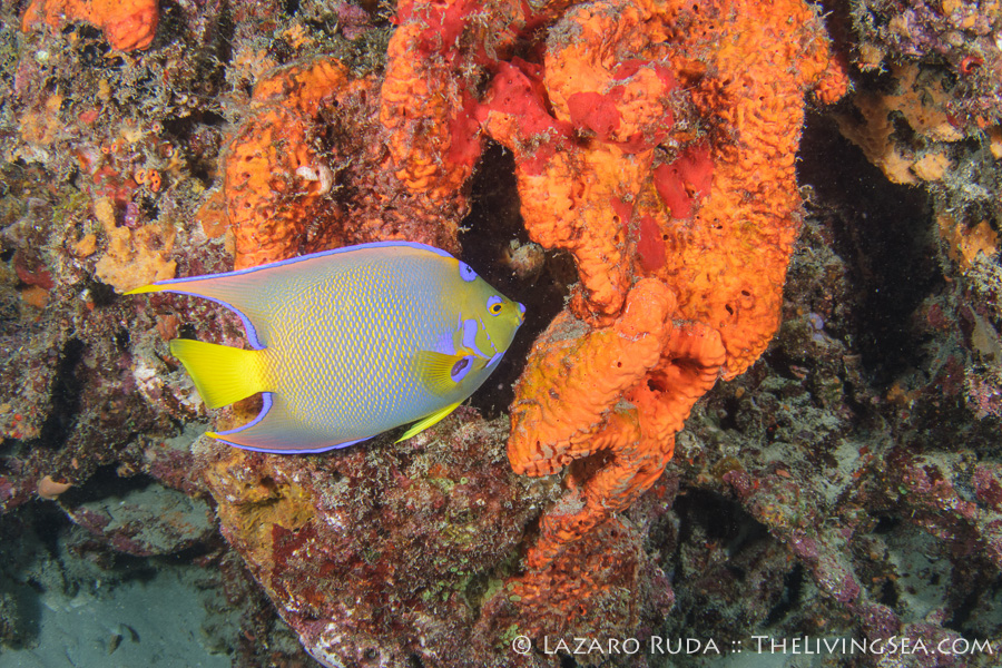 Continuing with the dive I was, as always, mesmerized by the amount of beauty this reef displays. Especially when you have clear blue water as a backdrop. One particular queen angel was so busy munching on sponges that it did not care that I hovered near by taking some photos of it. This is quite the rare moment as most angelfish tend to give you one quick flyby close enough for a photograph before spending the rest of the dive teasing you just outside the range of a decent photo. Such is the life of an underwater photographer! LOL!