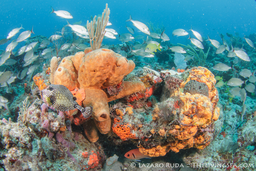The turtles were out here in droves! Loggerhead sea turtles, hawksbills sea turtles.. They were around every corner! Some, such as this one particular loggerhead we could count on seeing in the same spot. For the past month I have been returning regularly to this one spot on the reef to find this same turtle always laying in the same spot. This time, while I was busying myself looking for other sea creatures nearby, I watched her go up to the surface for a breath, and a few minutes later return to the SAME spot and lay down to rest. That’s amazing considering that the current had pushed the turtle out of view. Undersea animals have a sense of location beyond what we can imagine.