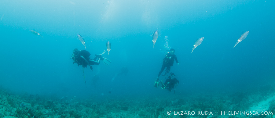 Our dive began midway through this long reef system as the current was neglegible and reaching the northern end reef patches of this reef is a must. These patch reefs are covered in corals and fish life including a couple of large goliath groupers. Throughout the dive the group encountered eels, squids, a sea turtle, and tropical fish of all kinds.
