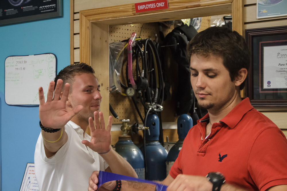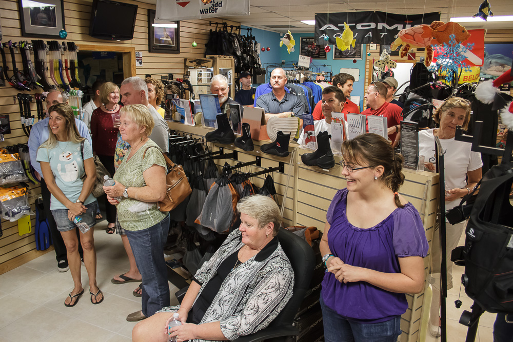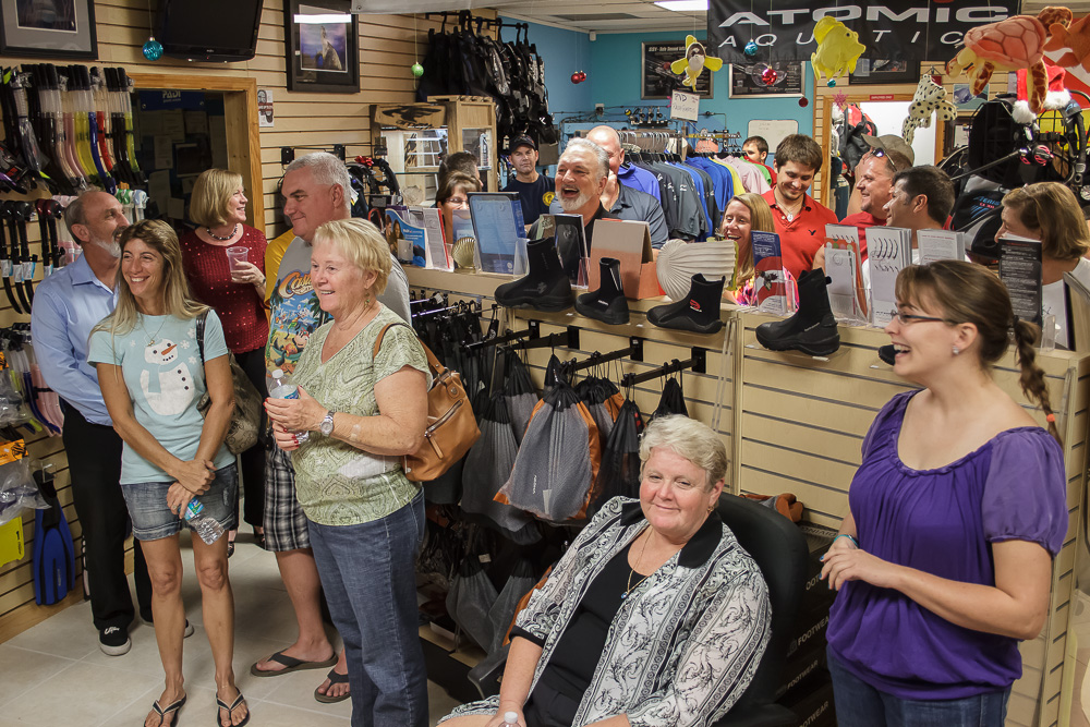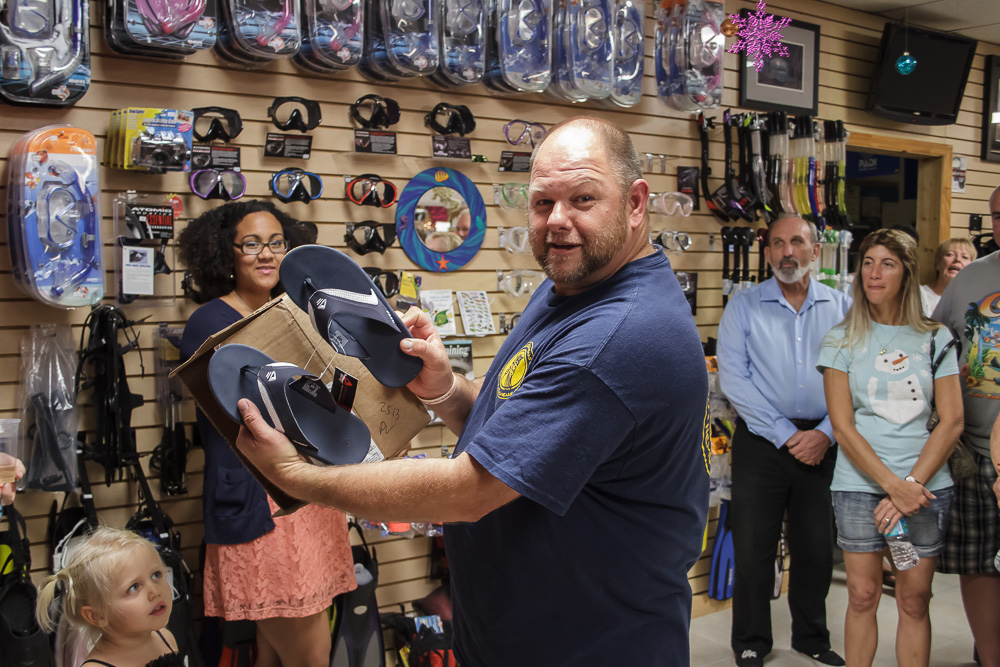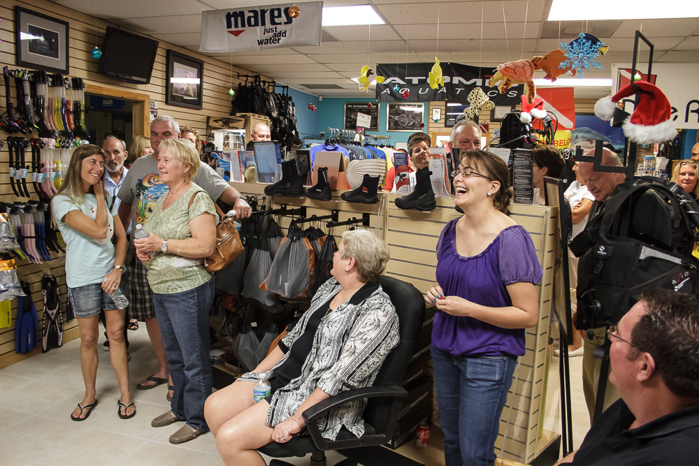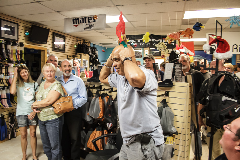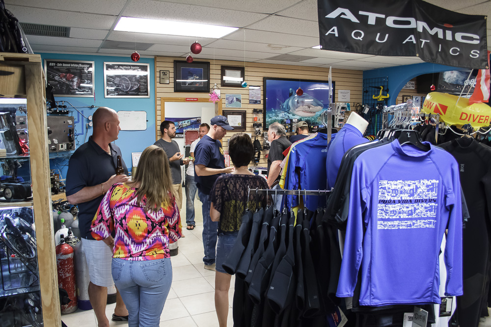 Pura Vida held its Christmas party last night at our shop on Singer Island. We had many of our guests who often dive with us show up for the great company, entertainment, food, and Christmas presents. Having these events is always a lot of fun as we get the opportunity to catch up with many friends and share in some great stories and laughs.