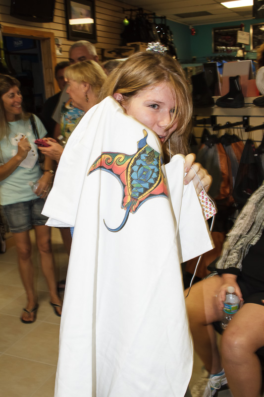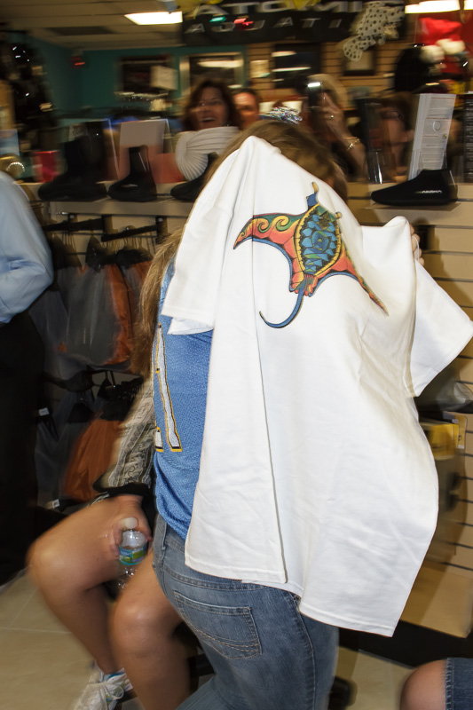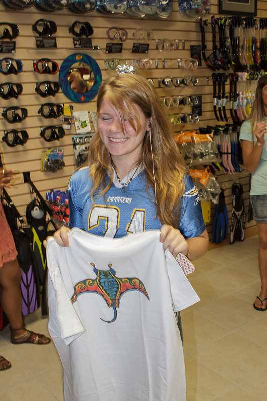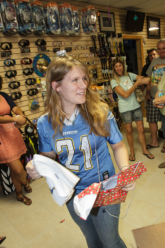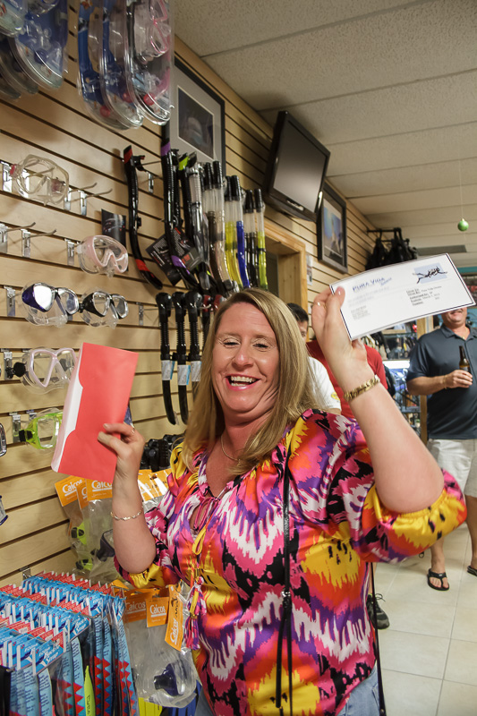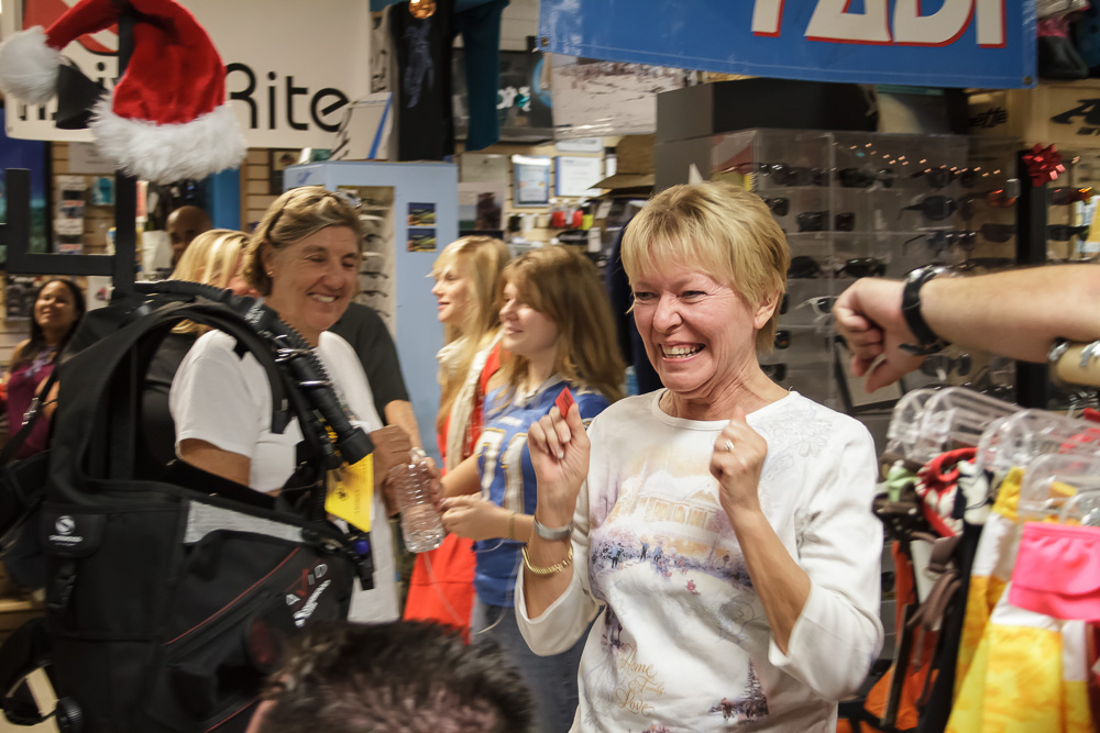 After enjoying a broad range of food, we gave away the twenty gifts under the Christmas tree. Santa left some great gifts under the tree for our guests. These gifts included a Sealife underwater camera, Intova underwater video camera, Costa Del Mar sunglasses, PVD boat pass, $50 PVD gift certificate, PVD/Dunleavy t-shirt, Alex Williams t-shirt, Reef sandals, TheLivingSea.com photograph, Quicksilver sun hat, and much more.
