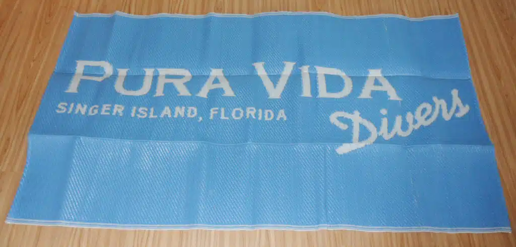 Those days are a thing of the past thanks to our new Pura Vida Divers Changing Mats. Lay this 3 x 5ft. mat across the floor and you can keep yourself and your dive gear happy. These mats are made of woven plastic so that sand and water quickly and easily wisp away. It also folds down to less than a foot in size with easy-to-carry handles.