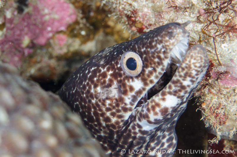 Our second dive on Spanish Anchor reef provided numerous more marine life encounters. One of my personal favorite is the smallest of the angelfish in our area, the cherubfish (Centropyge argi). These gorgeous little purple and orange fish can be seen darting in and out of the reef crevices.