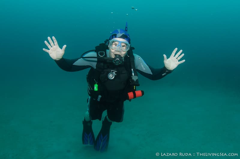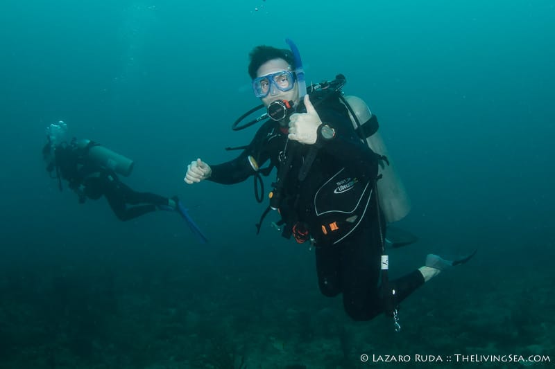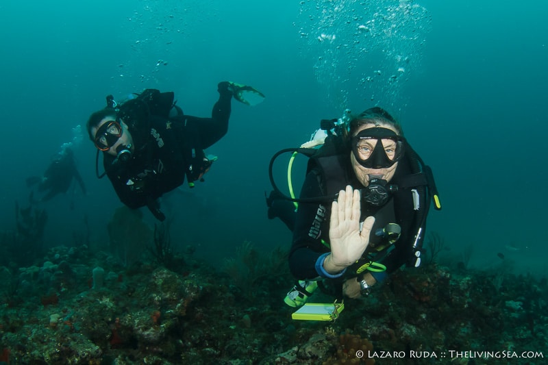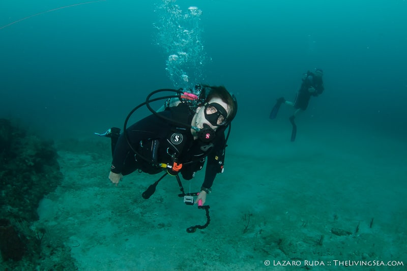 Sirena headed to the southern reefs this morning under overcast skies and a little rain. On our way south, the rain subsided and we headed underwater for our first dive at Ron’s Rock. This unique dive is a great place to hide from the current as the sand channel runs east and west. With little current this was not an issue. Water temperatures remained a constant 76-77 degrees. Had it not been for the overcast sky, which made it feel a little like a twilight dive, I would say visibility would likely be in the 50ft range.