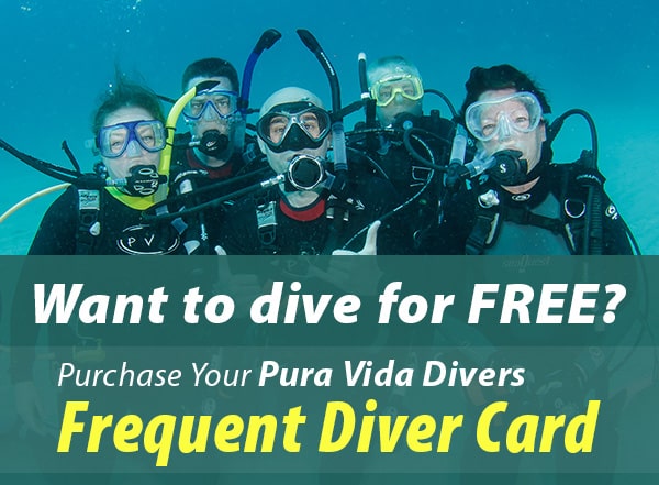 Pura Vida Divers Frequent Diver Cards can be used by one person only and are non-transferable. Frequent Diver Cards expire one year from the date purchased.