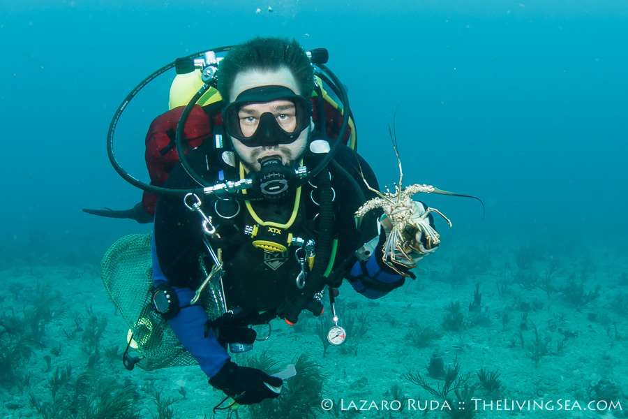 Scuba diving in Palm Beach, FL. is hard to beat especially on a day like today. With over 60 feet of visibility and a warm 79 degree water, we headed south to our shallow reefs for a nice, relaxing two tank dive. Along the way there, our boat, Sirena, motored over glass-calm seas. Our first dive was at Tear Drop where the group was treated to schools of tropical fish, eels, lobsters, and more with a very slow north current.