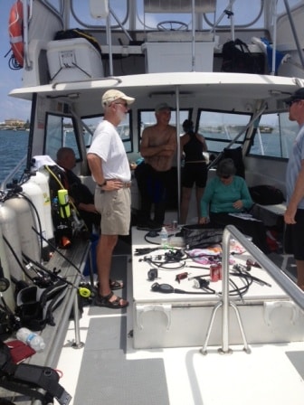 ScubaLab Regulator Testing commenced aboard Sirena today. Seven testers braved the rough in-shore conditions off of Palm Beach County to each test 13 brand new regulators out on the market. Today, ScubaLab divers specifically commented on the ergonomics of each regulator…such as how it breathes upside down, where the bubbles exhaust, and the general fit and feel of the regulators. Testers diligently wrote down their pros and cons and several regulators received high marks!