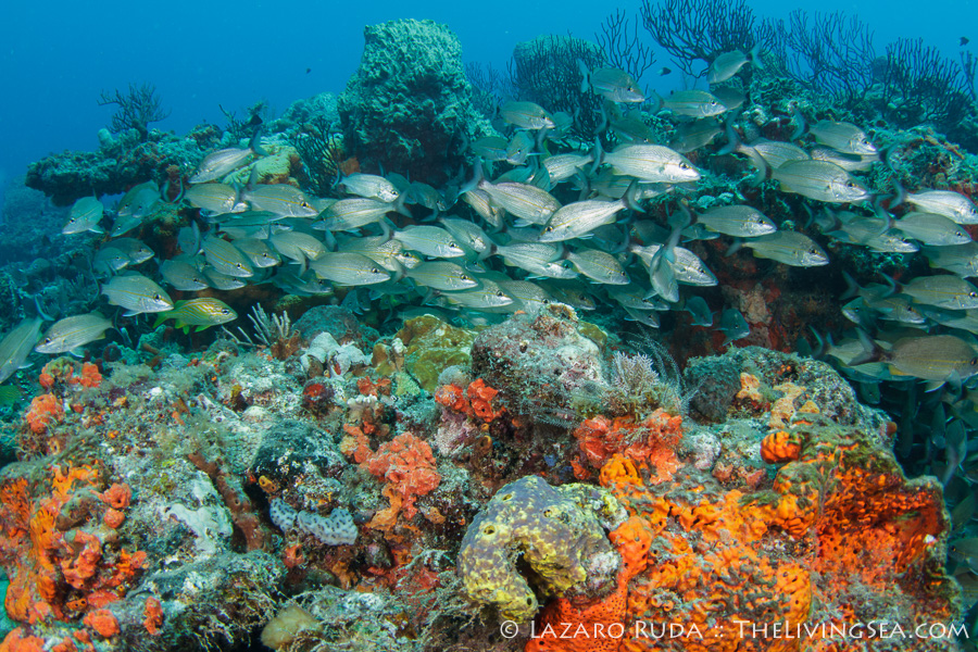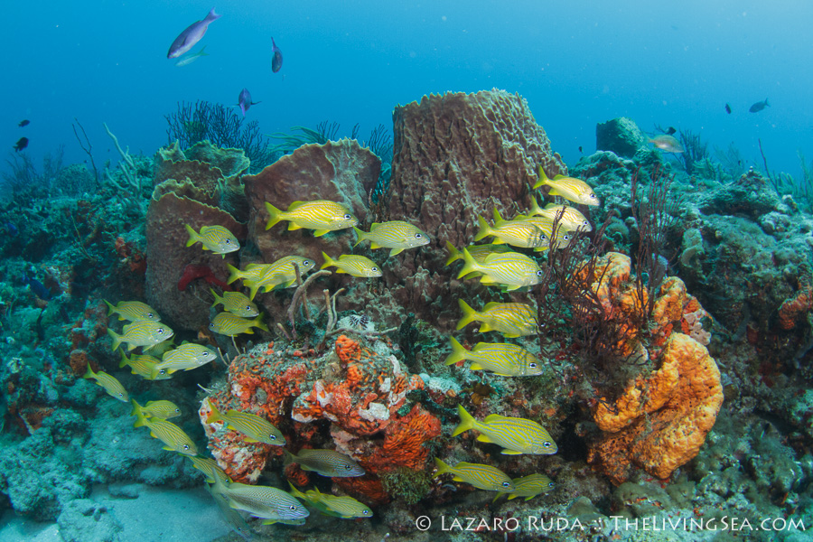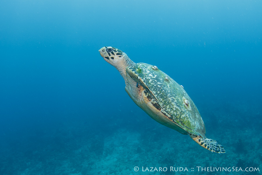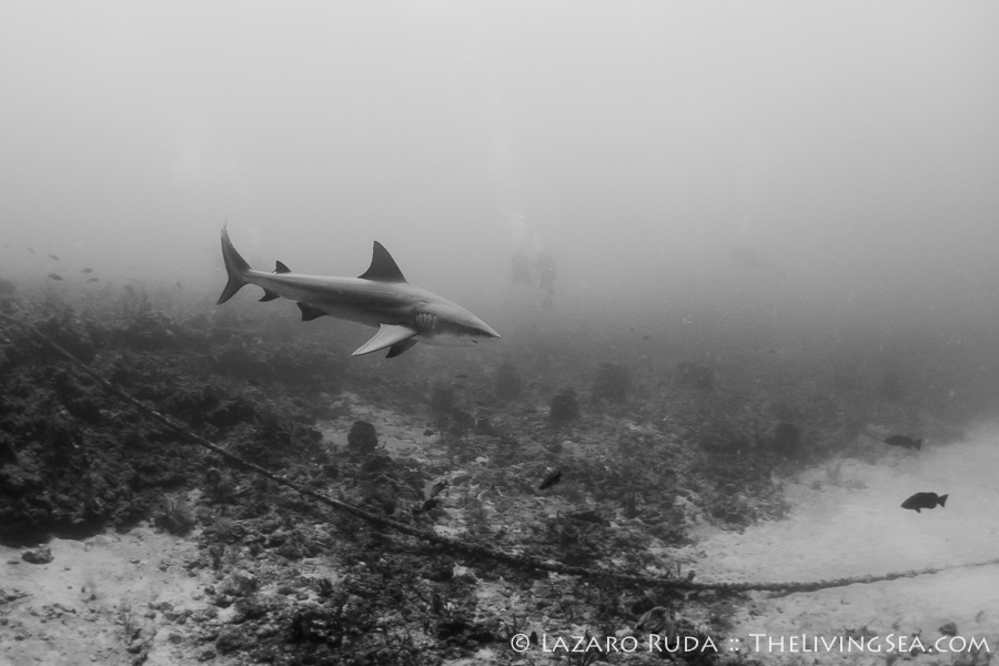 Bath and Tennis reef had its share of sea turtles, gorgeous corals and tropical fish galore. On Breaker’s reef the current settled down even more and the visibility improved, too. Crossing the cable on 4th Window, a bull shark came swimming by in front of the group making two passes before swimming away.