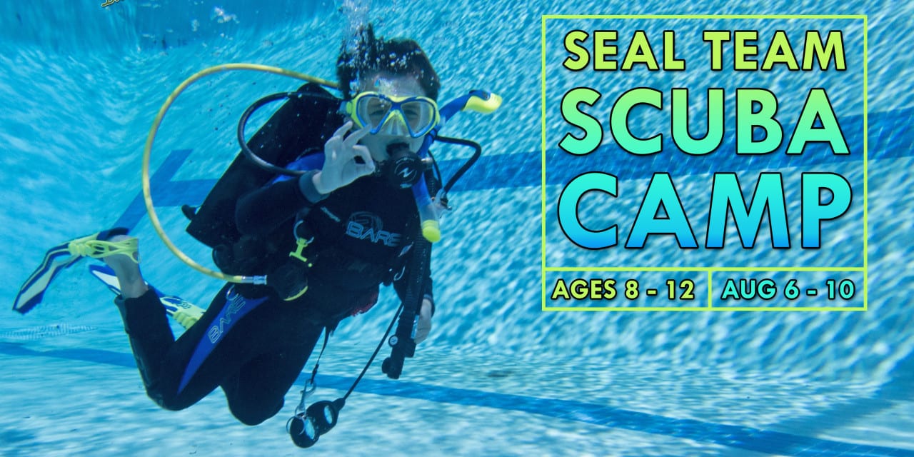 Seal Team SCUBA Camp will culminate in a pizza party on Friday to celebrate campers’ new skills! By the end of the week, participants age 10 and older will be ready to jump right into their Open Water certification class.