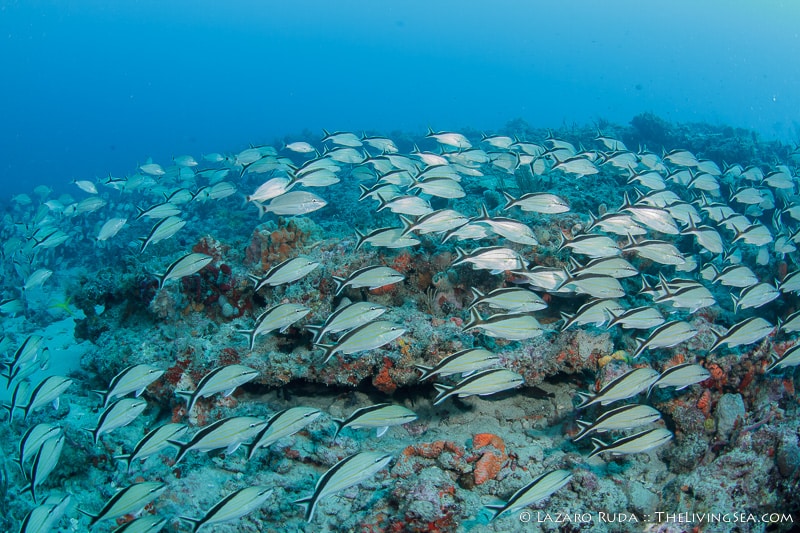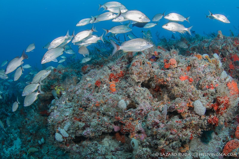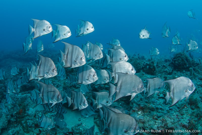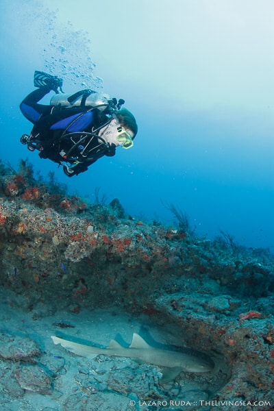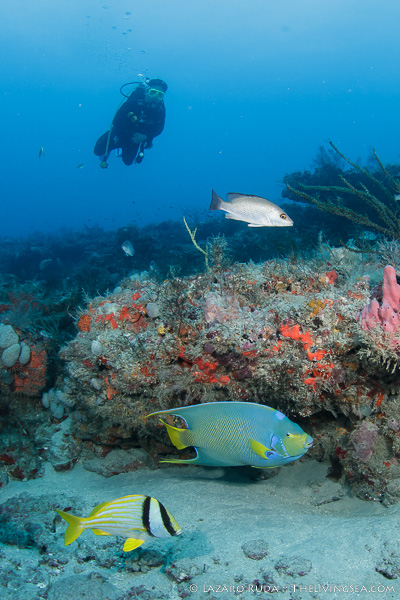 Our first dive today was at Shark Canyon where we encountered a couple of Caribbean reef sharks, we were encircled by gangs of Atlantic spadefish and numerous other tropical fish. All the while we bathed in crystal blue water with visibility in the 60-70ft. range.