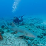Swimming up to the amphitheater, the reef sharks began appearing. In the mix of 4-6 reef sharks was a tiny little shark no more than 3-4 feet. Throughout the dive the sharks would swim passed the divers. Along the way we stopped to see a loggerhead who was snoozing away under the ledge. Under the clear blue waters, the beauty of the reef and its inhabitants made for some spectacular photo opportunities.