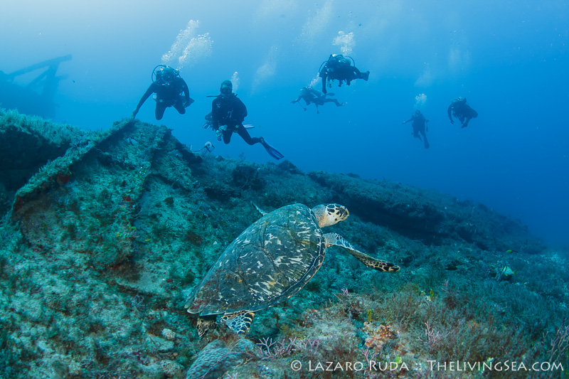 Upon our descend, we quickly came across a curious female loggerhead turtle who approached the first divers down. Exploring the wreck we encountered numerous marine life and in the mix were two bull sharks. A great start to the day’s SharkCount program.
