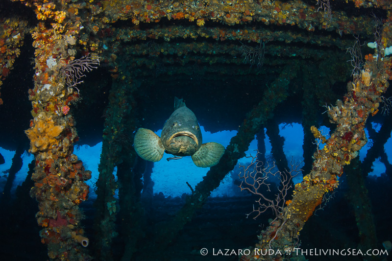 Traveling north from the wreck we zig zagged across Atlantis. Here we came across numerous goliath groupers and a Caribbean reef shark. We finished our dive on the Spud Barge with numerous goliath groupers including a very friendly and curious little guy within the breathtaking inner structure of the Spud Barge.
