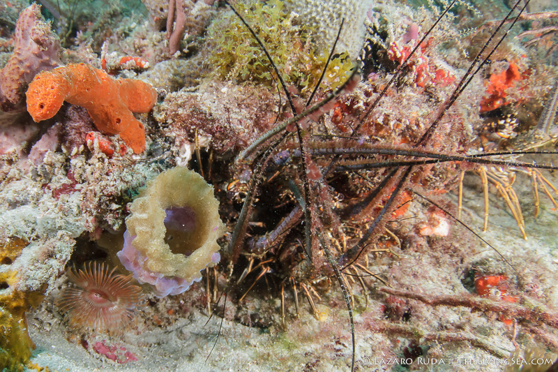 For our second dive, we followed our tried-and-tested method of diving the eastern edge of the reef, this time at The Trench. Out of a tiny hole, lobsters antennas radiated in every direction. A gorgeous sharptail eel moved along the bottom in search of any crustaceans.