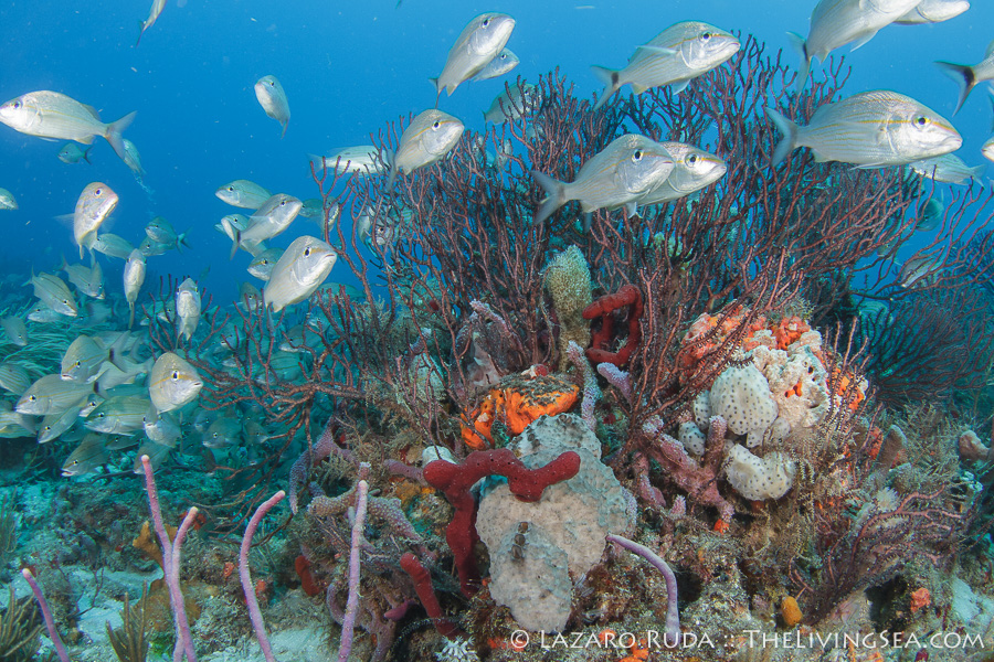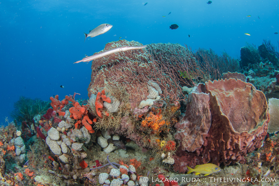 Our dives on Paul’s reef and Bath & Tennis were filled with all kinds of marine life encounters including numerous sea turtles, including a very large male green sea turtle, lots of eels, goliath groupers, and the thousands of tropical fish.