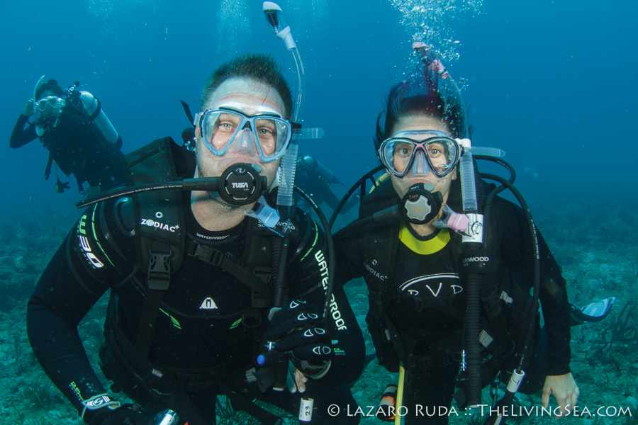 The diving was pretty awesome, too! Summertime diving conditions meant we were enjoying Palm Beach’s colorful coral reefs and marine life with gorgeous blue warm water. Water temperatures in the lower 80s meant even I was sans wetsuit. That’s says a lot if this W.I.M.P. (Warm Intelligent Marine Professional) is not wearing a wetsuit. It’s REALLY nice and warm! 🙂