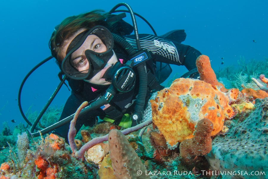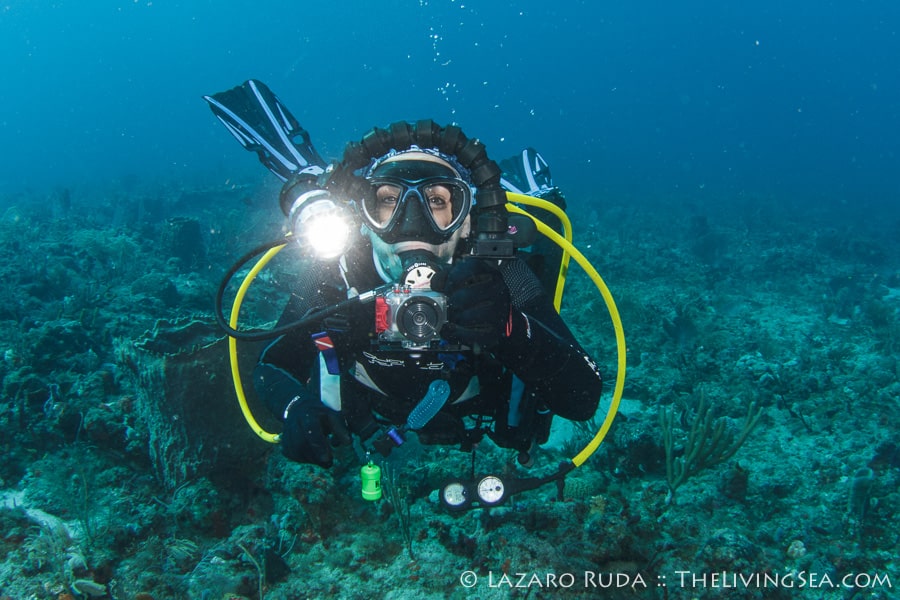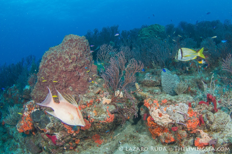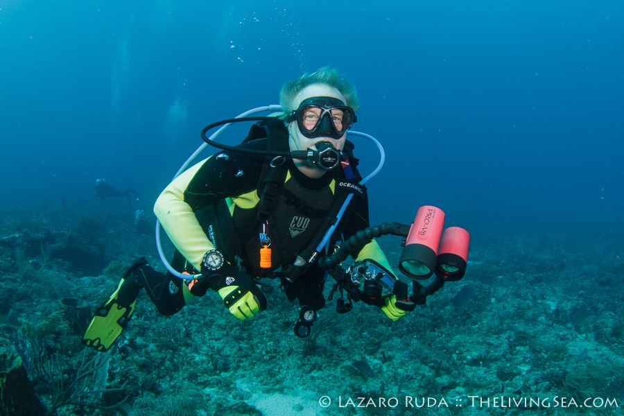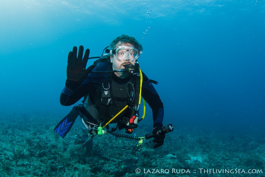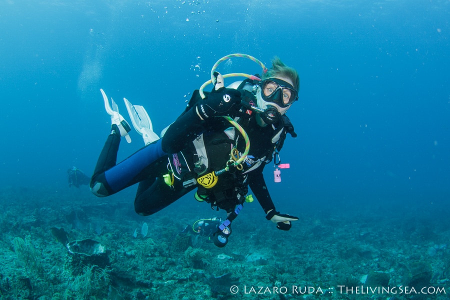 Sirena headed out today to the southern reefs on another Palm Beach diving adventure! Our first stop was at Tear Drop reef where we had top to bottom visibility with 50-60 horizontal. The water has begun to warm up again with the dive computer marking 75 degrees. A slight north current slowly moved us along the reef ledge.
