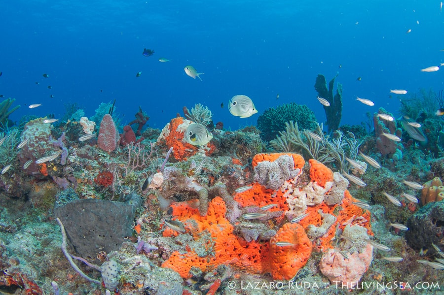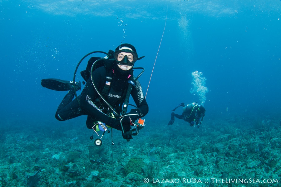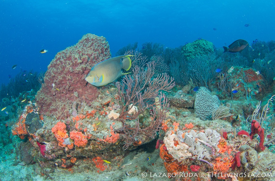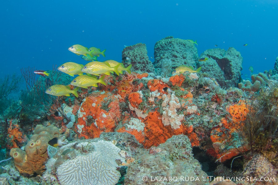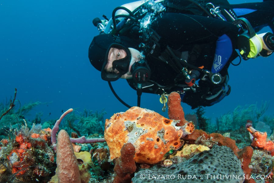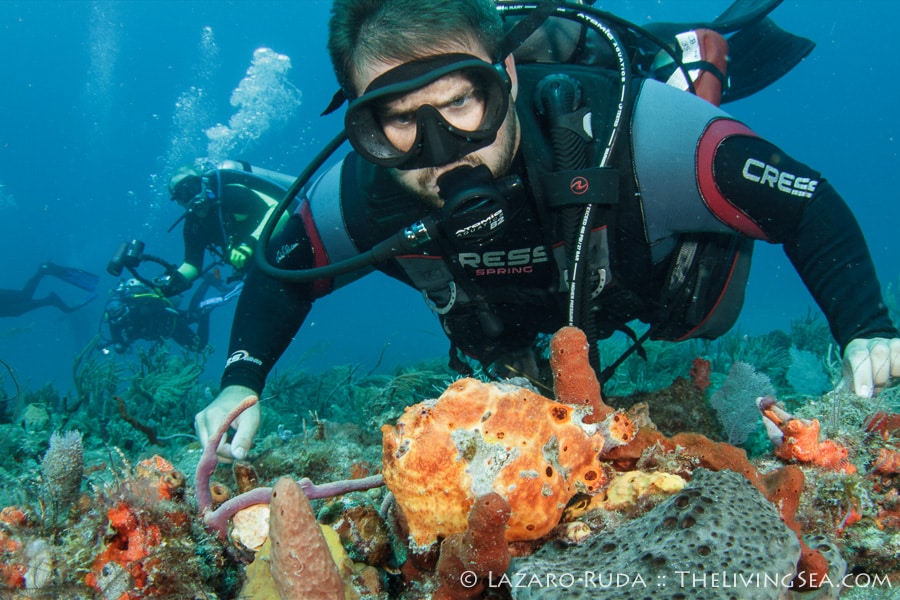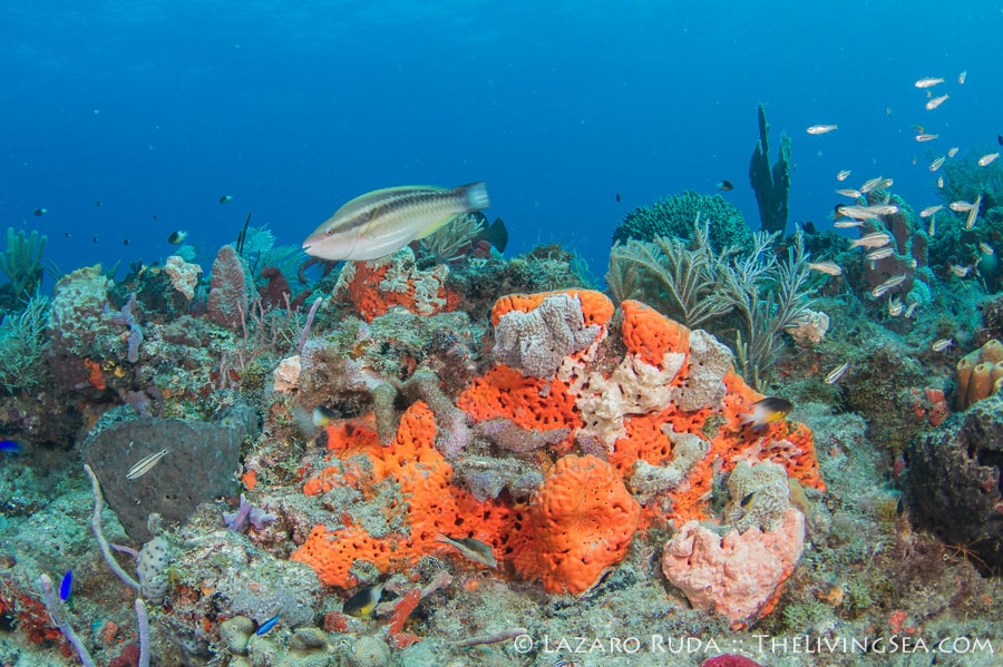 Sirena headed out today to the southern reefs on another Palm Beach diving adventure! Our first stop was at Tear Drop reef where we had top to bottom visibility with 50-60 horizontal. The water has begun to warm up again with the dive computer marking 75 degrees. A slight north current slowly moved us along the reef ledge.