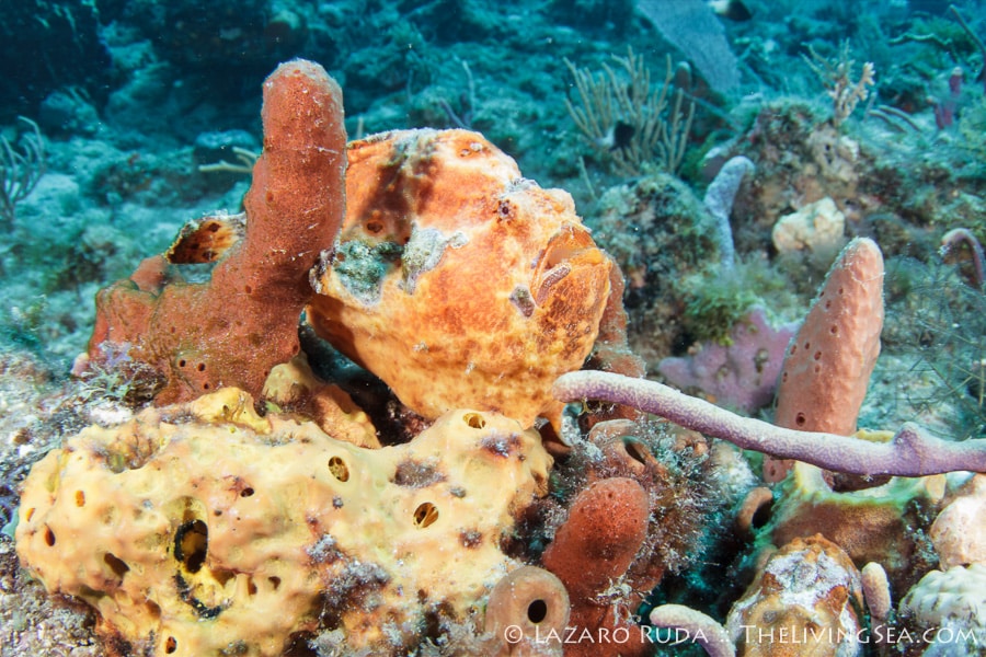 As we were preparing for our second dive on Flower Gardens, our friends on The Wetter The Better radioed us to tell us they had come across a pretty special, albeit weird-looking, fish… A longlure frogfish! This fish is special in that we rarely come across them as they are masters of camouflage; they look just like a sponge on the reef. Uniquely is their method of ambushing prey. They use a modified dorsal fin ray, shaped much like a fishing rod and lure at the end, to attract their prey within reach of their fast-striking mouth.