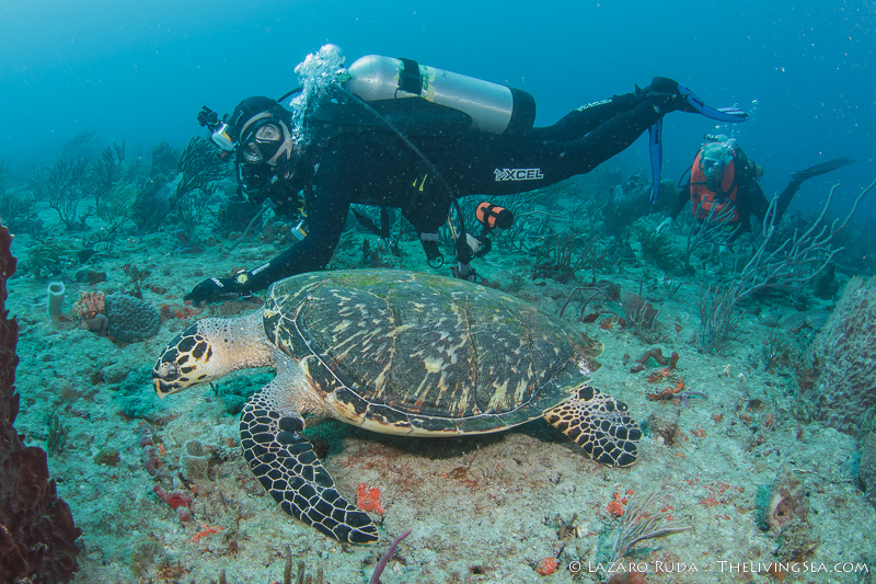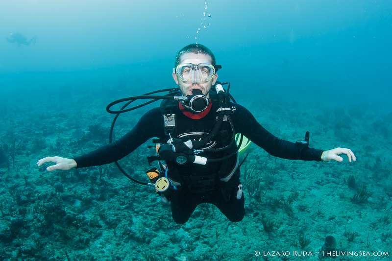 Our second dive on Breaker’s reef, as always, was certain not to disappoint. Within a minute of descending to the reef, the group came across a large hawksbill sea turtle who was busy munching on some delicious sponge. He was so enthralled in the sponge that he did not seem to care for the many onlookers around him.